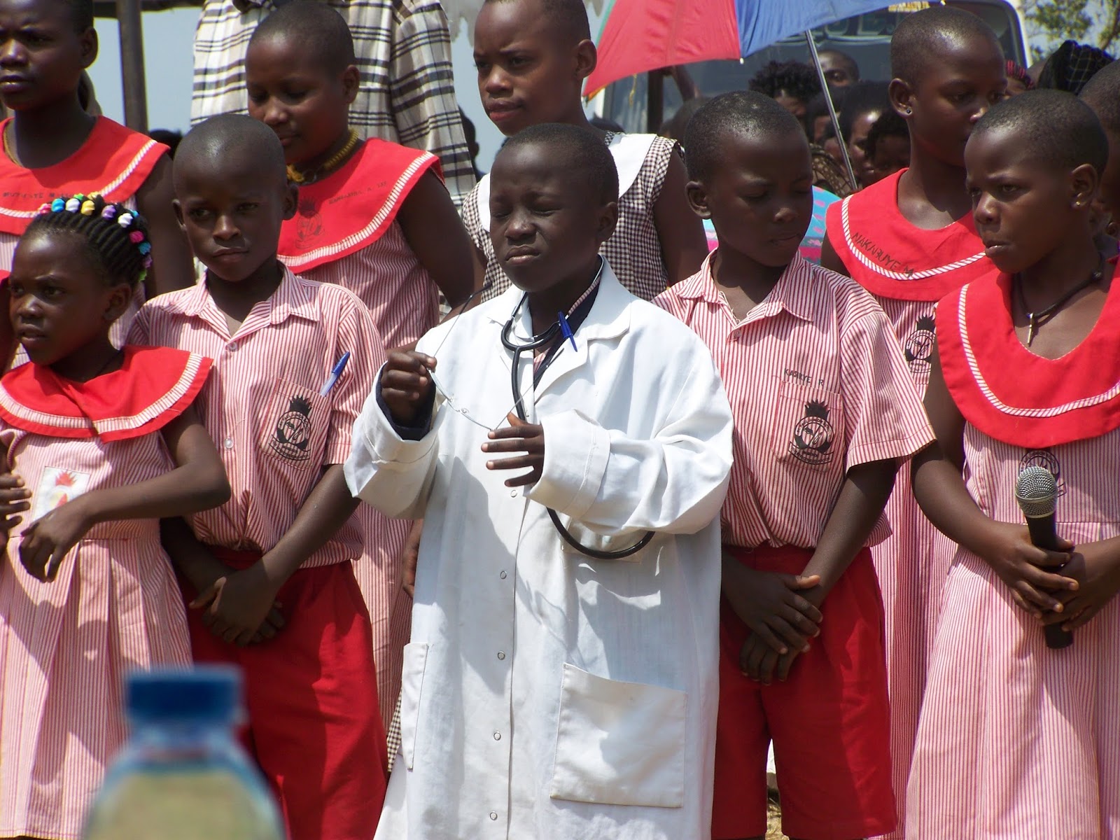 After I shared, our Ugandan nurse, Agnes, got up to do her presentation. We talked shortly after arriving and decided that her usual talk would have to be altered because of the large crowd and the men being present. She looked very nervous after seeing the TV camera and the dignitaries, but once she got up to speak, all fear seemed gone. She did a great job.